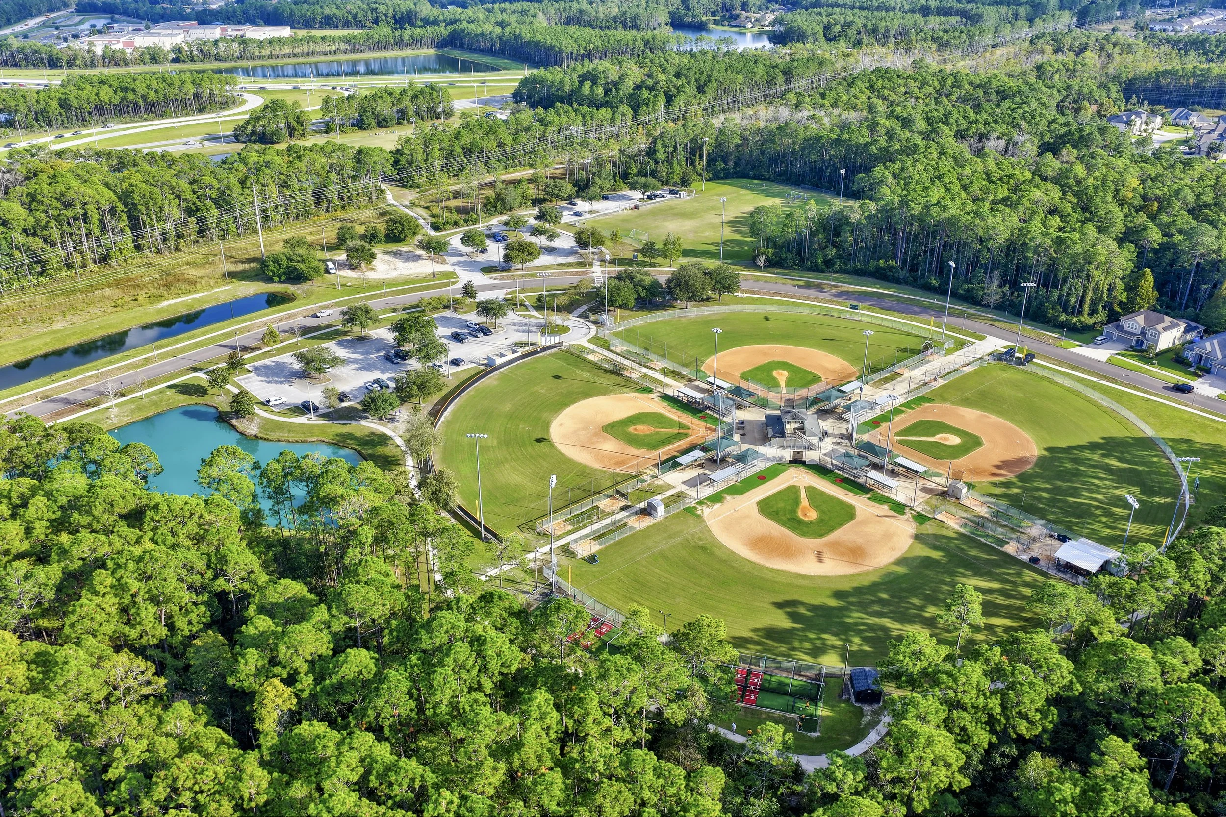 Behind Patriot Oaks Academy, a well-kept field offers space for baseball, soccer, and outdoor fun for the whole community.